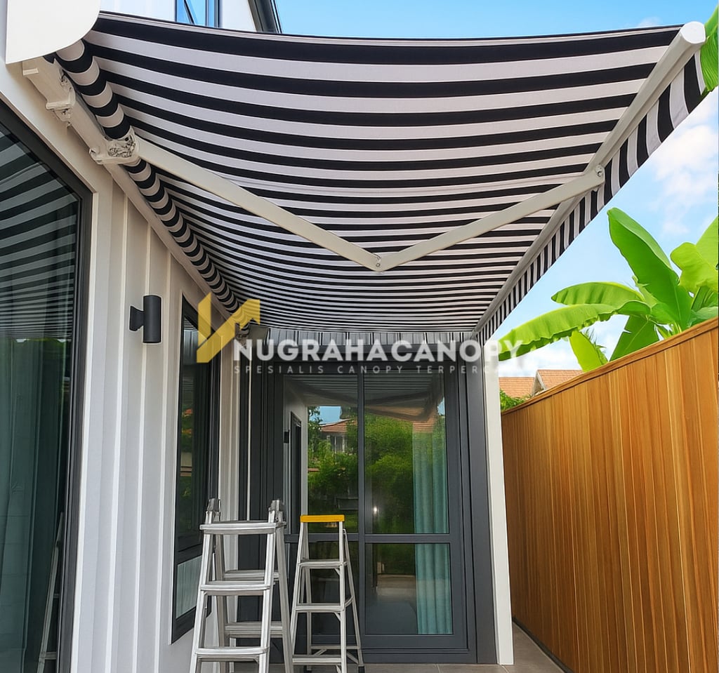 Dapat dibuka atau ditutup sesuai kondisi cuaca. Tersedia model manual (engkol) dan otomatis (remote control) untuk kenyamanan maksimal.Bahan Kuat & Tahan Cuaca